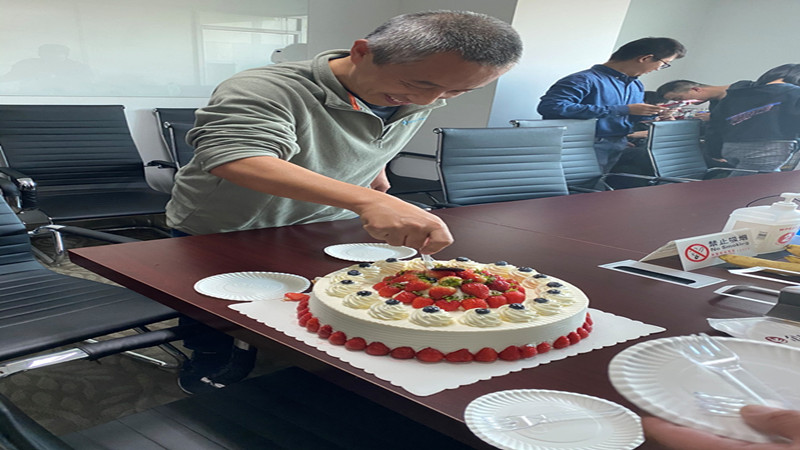11月共有6位领导及同事庆生。会场洋溢着喜庆热烈的气氛。下午3点准时,一块奶香四溢搭配水果点缀的大蛋糕已经摆放在桌子上,静静等候着属于它的“主人”到来。