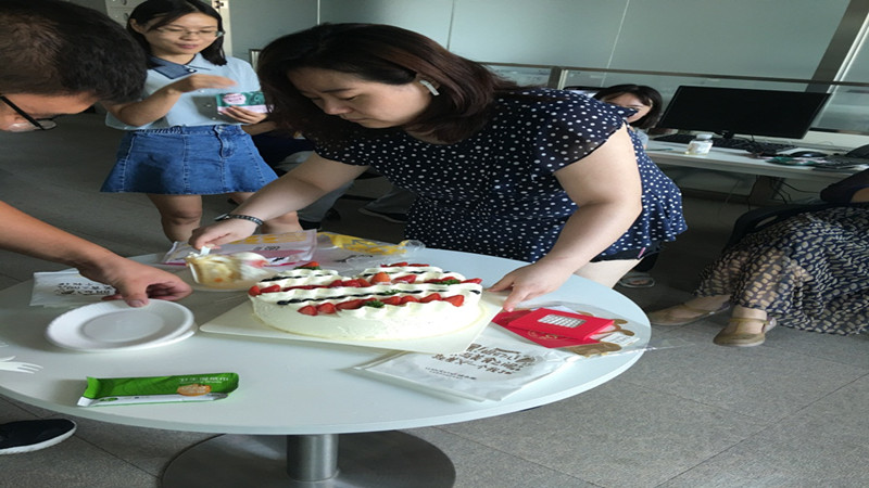 下午3点,公司同事准时来到4楼休息区,映入眼帘的是零食架上摆放着琳琅满目的食物。公司还特地为在8月过生日的大朋友、小朋友们准备了生日蛋糕,恭祝8月寿星生日快乐!