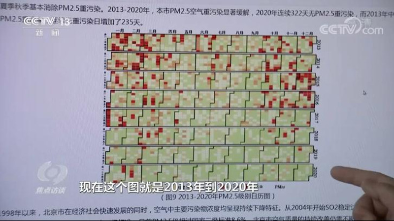 北京市生态环境局大气环境处处长李翔说:“总结来看就是‘一增一减’,好天到2020年276天,占比是75%,比2013年增加了一百多天;‘一减’就是在秋冬季易发的重污染天数,2020年下降到了10天,比2013年下降了48天。”