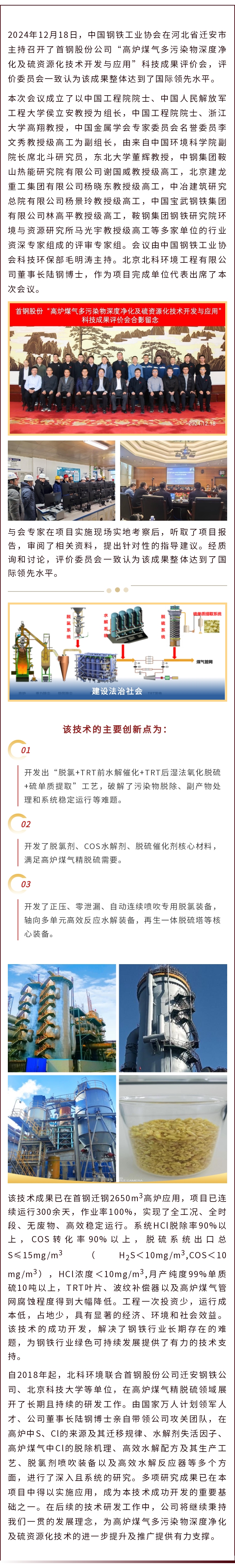 国际领先——我司高炉煤气精脱硫技术获中国钢铁工业协会鉴定