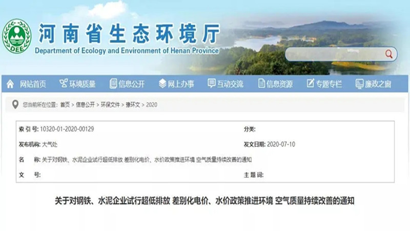 河南省:来自河南省生态环境厅和河南省发展改革委的消息显示,自2020年8月1日起,全省凡未按要求完成超低排放改造的钢铁、水泥企业,其网购电量(含市场化交易电量)和购买自来水企业水量全部实行加价政策。