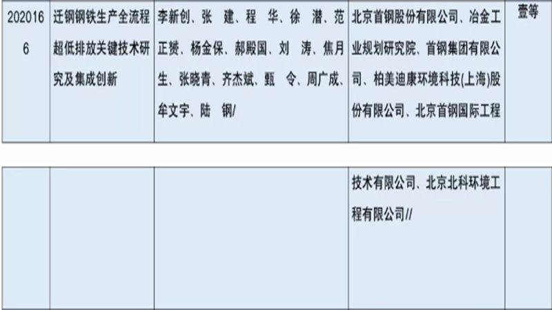 近日,中国钢铁工业协会对外发布《关于授予“大型转炉洁净钢高效绿色冶炼关键技术”等101个项目2020年中国钢铁工业协会、中国金属学会冶金科学技术奖的公告》。《公告》显示,华球体育(以下简称:北科环境)“迁钢钢铁生产全流程超低排放关键技术研究及集成创新”项目荣获2020年度中国冶金科学技术一等奖。